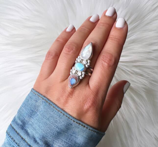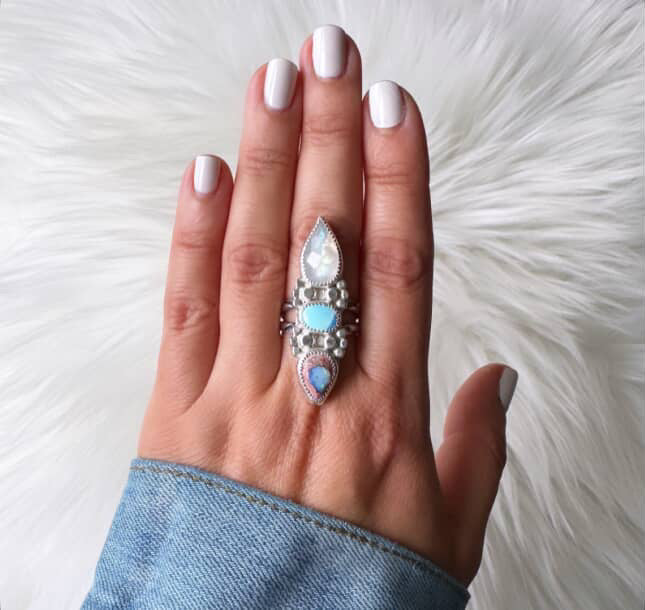 Size 8 / Mexican Fire Opal, Turquoise and moonstone ring