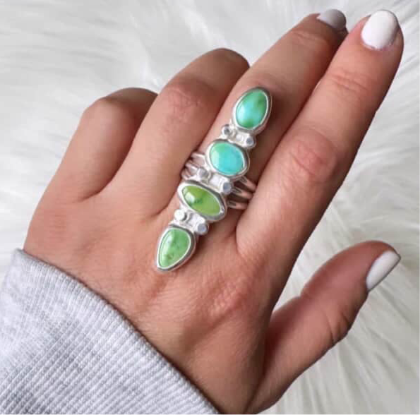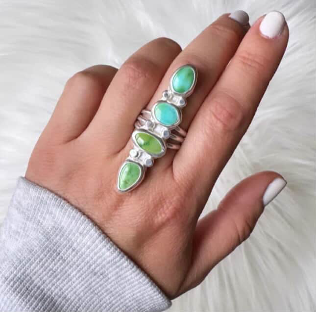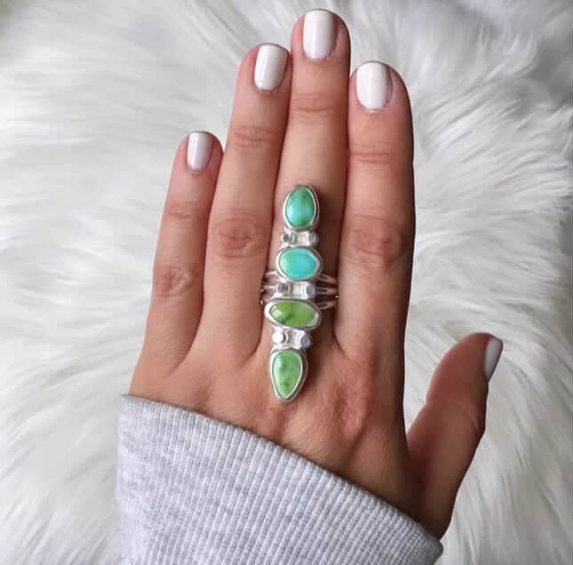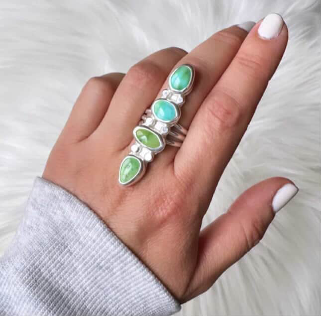 High grade Sonoran Mountain Turquoise in an ombre color!! set in solid sterling silver 925, with a triple split ring band in a polished finish.