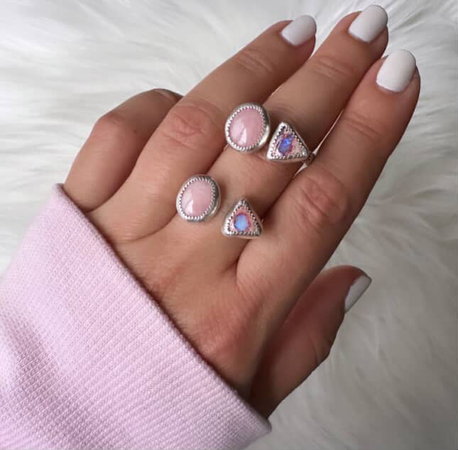 Size 9 - 10 // Mexican Fire Opal and Pink Opal