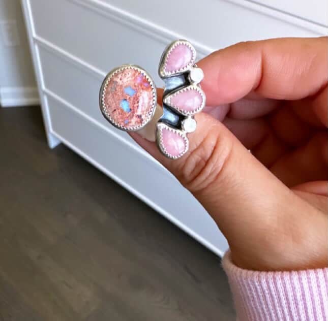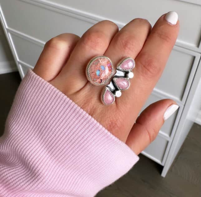 Size 7.5 - 9 / Mexican Fire Opal and Pink Opal Cluster Ring
