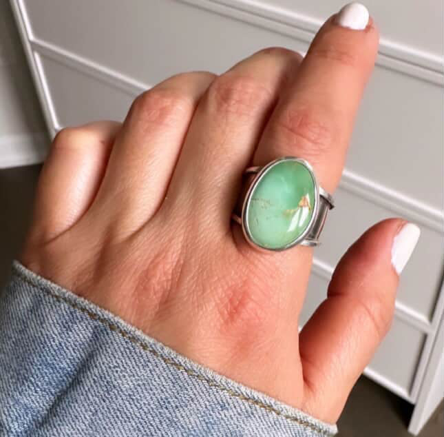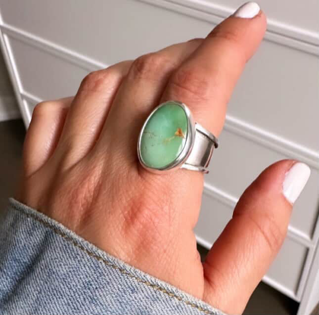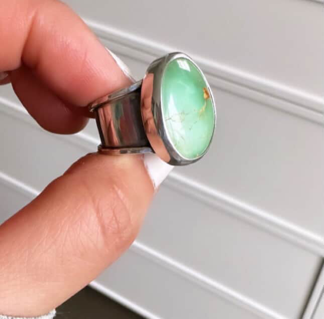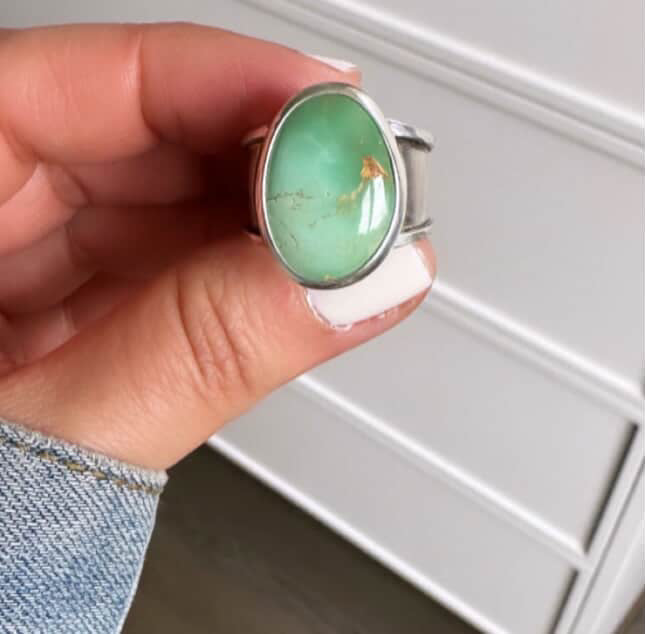 Gorgeous high grade Royston Turquoise set in sterling silver 925 and with a wide ring band.