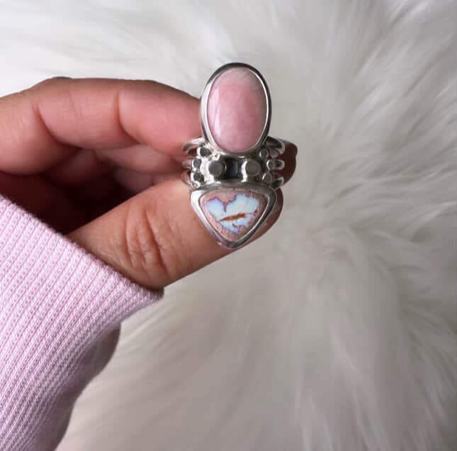 Size 7 / Pink Opal and Mexican Fire Opal ring